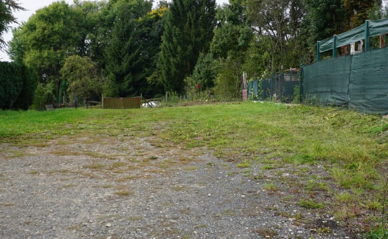 Zufahrt zum Haus. Bisher konnte man das Grundstück auf dem unser Bungalow stehen wird von der Straße aus kaum sehen. Die bisherige Einfahrt führte zuerst leicht (dachte ich) bergauf und dann wieder bergab. Ursprünglich war unser Plan auch, es dabei zu belassen. Aber durch die Besonderheit des Bungalows war es sinnvoll, die Einfahrt bereits jetzt einzuebnen und die Kuppe abzutragen. Auch dafür spricht, dass unser Tiefbauer die Fahrzeuge jetzt hier hat, es genug Platz für den Aushub gibt und alles in einem Aufwasch gemacht werden kann.