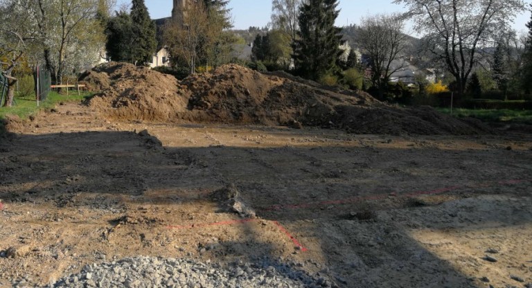 Dass dabei sooo viel Erde anfällt, hätte ich nie vermutet. Denn wir haben ja keinen Keller und nur am nördlichen Teil wurde etwas tiefer gegraben. Ein guter Teil der Erde stammt aus der Einfahrt. Der Abraum wird auf dem hinteren Teil unseres Grundstückes gesammelt. Abfahren wollen wir wenn möglich nichts, denn für die „Entsorgung“ zahlt man und es ist Aufwand.