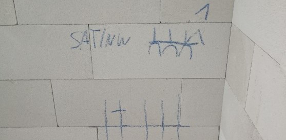 Heute wurde in unserem Bungalow gezeichnet. Erinnert ein bisschen an Höhlenmalerei… Nein, wir haben Stunden mit unserem Elektroinstallateur verbracht um Anzahl und Lage der Elektroinstallation an den Wänden zu kennzeichnen und danach kam direkt der Kollege vom Sanitär und hat weitergezeichnet.