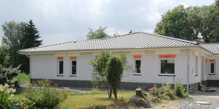 Fenster und Rollläden werden gerade eingebaut. Die kleineren Fenster sind bereits gesetzt. Nun wirkt unser Bungalow noch mehr wie ein richtiges Haus. Wann können wir einziehen?