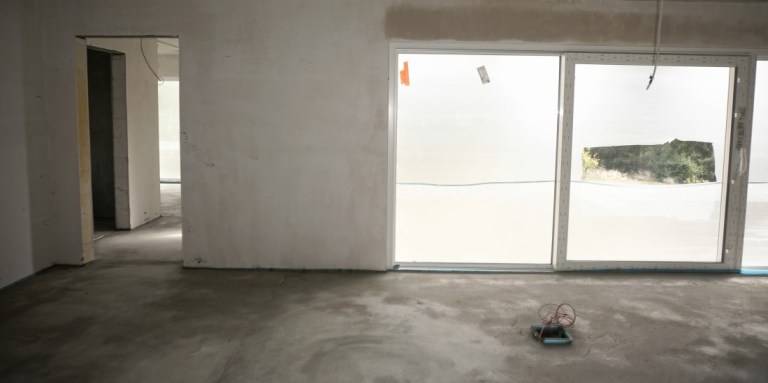 Überall im Boden sieht man kleine rote Wimpel aus dem Estrich herausragen. Dies sind Kontrollpunkte, an denen die Feuchtigkeitsprüfung gefahrlos erfolgen kann. An den Stellen (Kontrollpunkte) kann später eine Probe genommen werden, ohne dass die Schläuche der Fußbodenheizung verletzt werden.