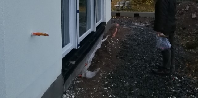 Ich habe noch nicht berichtet, dass eine unserer Regenrinnen vor 3 Wochen einen anderen Weg gefunden hat als geplant. Und bei der Gelegenheit kann ich nur jeden warnen, zu viele Änderungen in der Bauphase zu machen. Ganz schnell geht da unterwegs etwas verloren oder es klappt auf die Schnelle doch nicht so wie geändert. Hier war es überhaupt kein Problem – hoffen wir.