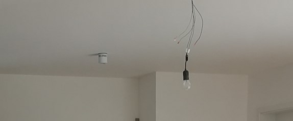 Da unsere Leuchten mittlerweile eingetroffen sind, konnte unser Elektriker diese auch gleich montieren und wir können auch prüfen, ob die Schalter die richtigen Lampen einschalten. Das machen wir. Und zusätzlich prüfen wir die Smart-Steckdosen. Alles ok. Und im KNX Zählerkasten herrscht große Ordnung.