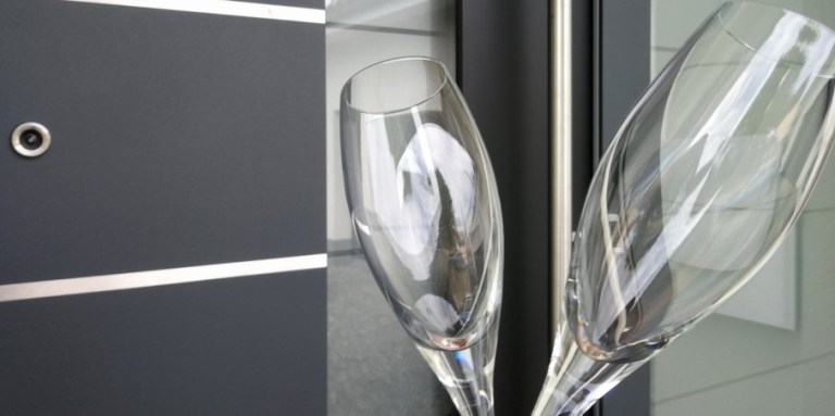Aber zunächst steht die Hausübergabe an. Nur wir und die beiden Bauleiter von Visioplan sind noch da. Es gibt erst ein Gläschen Sekt und dann eine Ansprache von uns, in der wir den Bauleitern, Herrn Sauer und Herrn Pfeiffer von Visioplanhaus, sagen, wie toll das Hausprojekt gelaufen ist. Wir sind außerordentlich zufrieden mit dem Ergebnis und auch mit dem Weg dahin. Ihnen gebührt ein dickes Dankeschön für den reibungslosen Ablauf unseres Hausbaus. Alles war super organisiert. Bis zum Bauende lief alles wie am Schnürchen, von einer kleinen Verzögerung abgesehen. Insgesamt hat das Bauen – nach Fertigstellen es Planums bis zur heutigen Übergabe – 9 Monate gedauert. Das ist doch was!