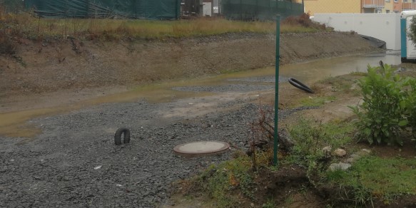 2.12.2018 Als ich heute zur Baustelle komme, muss ich fast zum Haus schwimmen. Es hat stark geregnet – auch jetzt nieselt es noch – und die Einfahrt steht unter Wasser. Es ist ja noch eine …