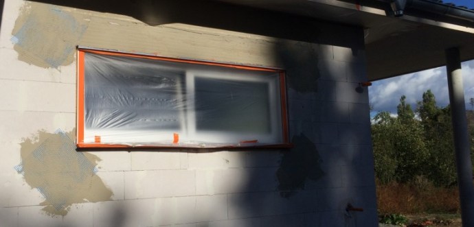 3.10.2018 Wie bereits vorher beschrieben sind die Vorarbeiten für den Außenputz schon ein vor einer Weile erfolgt. Die Fenster sind mit Folie sauber abgeklebt und auch alles was sonst noch aus der Wand herausstand. Jetzt …